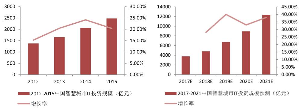 2012-2021中国智慧城市IT投资规模预测(数据来源于网络)