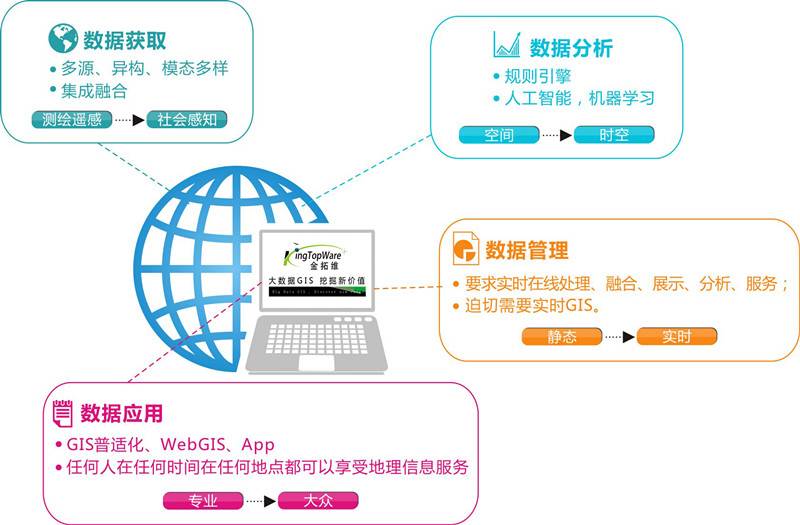 湖北金拓维是一家专业从事3S技术平台及应用研发的高新技术软件企业,公司一直秉承“大数据GIS,挖掘新价值”,其自主研发的金拓维时空大数据高性能云GIS平台(K-TopHighGIS)通过了王家耀等专家院士的科技成果鉴定,并荣获“2017地理信息科技进步奖”,基于该平台自主研发的多个智慧城市建设项目先后荣获荣获 2017中国地理信息产业优秀工程奖等诸多荣誉。湖北金拓维将通过持续的技术创新与大数据GIS挖掘,推出更加领先的(新型)智慧城市解决方案,携手政府打造出高效、智慧的新城市形态。