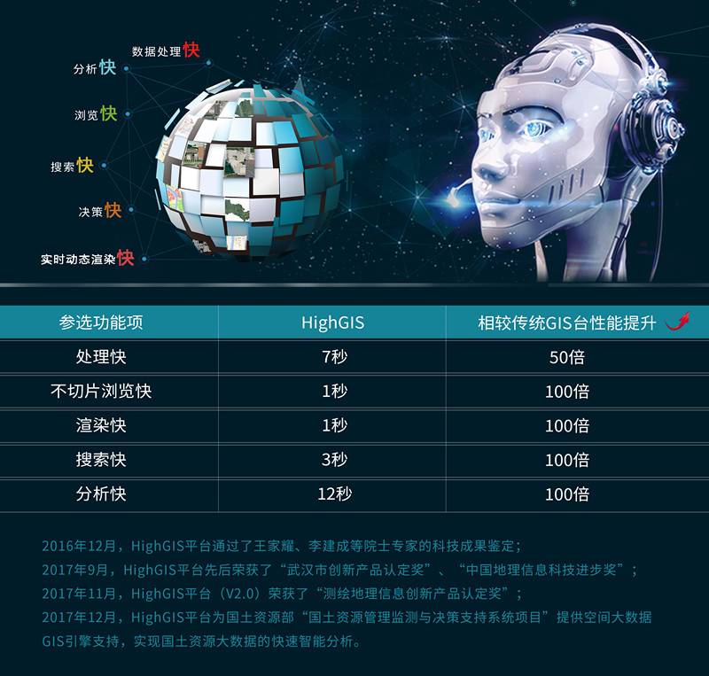 另外,刘总还热情、自信的提到了湖北金拓维自主研发的大数据GIS平台(HighGIS):“该平台从2014年研发至今,实现了时空大数据价值挖掘性能的百倍提升,为部级、省、市、县多个重要项目提供了空间大数据GIS引擎支持。基于该平台,我们金拓维还研发了新一代时空(大)数据中心平台、智慧城市时空信息云平台、智能分析平台、三维地理信息平台等基础平台,以及涵盖国土、规划、公安、水利、交通、农业、税务等行业的应用系统,形成了“五大平台、N个应用”的成熟产品体系。”