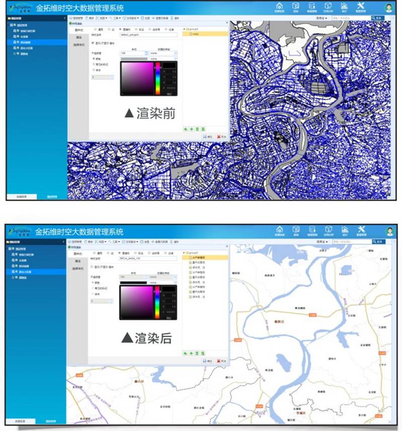 面对海量空间数据,传统GIS平台主要采用切片方式解决数据快速显示的问题,但切片方式大大增加了数据存储、数据维护困难、更新周期长、无法动态渲染,存在耗时、耗力、耗存储等严重问题。HighGIS实现了大规模空间数据Web端无需缓存切片的实时浏览、快速动态渲染,支持地图无极缩放浏览,在线进行数据配图,支持一套数据多种配图风格。