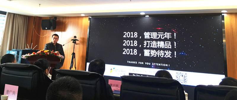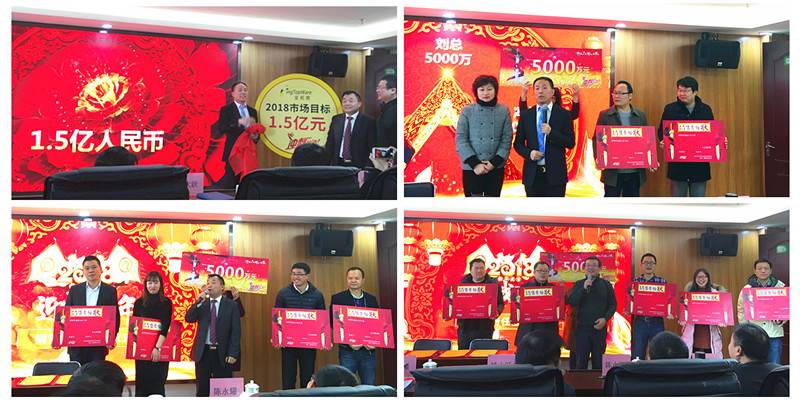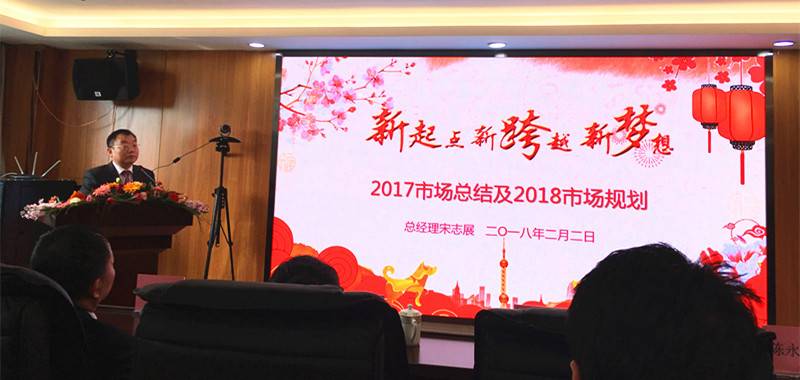 总经理宋志展先生对2017年市场情况作了详细汇报,局部市场继续深挖、全国市场稳步推进、销售团队开拓进取,争取在2018年实现1.5亿元大目标。为了进一步推进全国市场规划布局,今年,刘诗雄董事长、宋志展总经理和冯科副总经理将各自带领市场团队,力争取得更加丰硕的业绩。