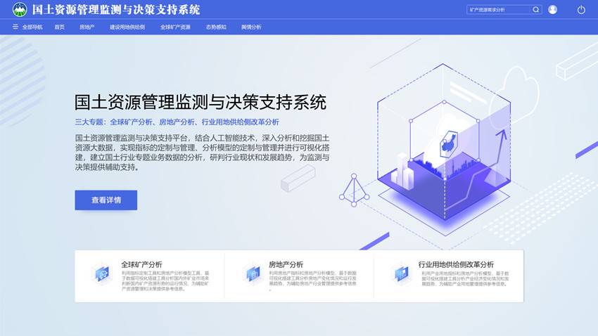 该系统建成后,将为湖北省各级国土资源主管部门提供协作研究的智能化知识管理系统和决策支持系统。该系统将集成深度分析、智能化检索、舆情监测、辅助决策等多项功能,从数据接入到分析挖掘再到辅助决策全程一体化、智能化,实现国土资源管理工作由单纯的网上审批、网上监管向数据分析、决策支持转变,由单纯的数量管理向数量、质量、生态综合管理转变,由“数字国土”向“智慧国土”转变。