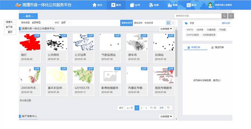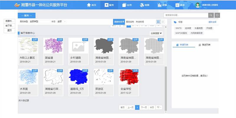 为了积极响应《湖南省地理空间数据管理办法》,湘潭市在此次数字湘潭公共服务平台升级过程中,采用市县一体化的思路,重点建设了“湘潭市县一体化公共服务平台”,实现了资源聚合和共享交换。