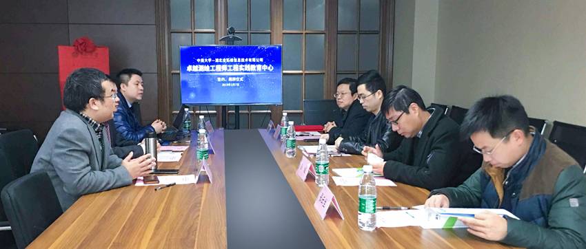 宋志展宋经理对邹教授一行莅临金拓维软件表示感谢,何亮总监详细介绍了公司的基本情况,特别是近年来公司在校企合作、产学研一体化,以及科技研发等方面取得的成绩。邹滨教授介绍了中南大学测绘地理信息学科发展情况及卓越测绘工程师培养背景,随后双方进行了签约和揭牌。