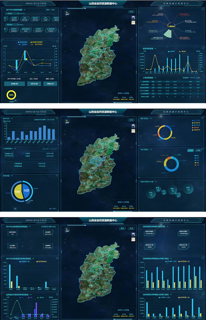 该项目,基于金拓维大数据GIS(HighGIS)研发,实现了空间数据无需预先切片即可快速浏览,查询,统计分析、在线实时渲染等功能;同时,通过采用规范全面的数据质检、高效快速的数据处理等功能,实现了山西省海量国土数据的快速读取、存储、调度、入云发布、分析等。