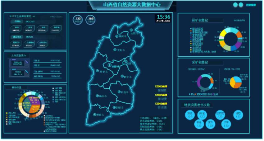 对数据中心统筹管理的各类自然资源数据进行多维度统计,将重点关注指标以领导驾驶舱的形式进行大屏综合展示,实现各类重点关注指标的宏观掌管、微观探查和统筹展现,基于指标的层层钻取和图属联动,数据家底直观可视,为领导决策提供辅助依据。
