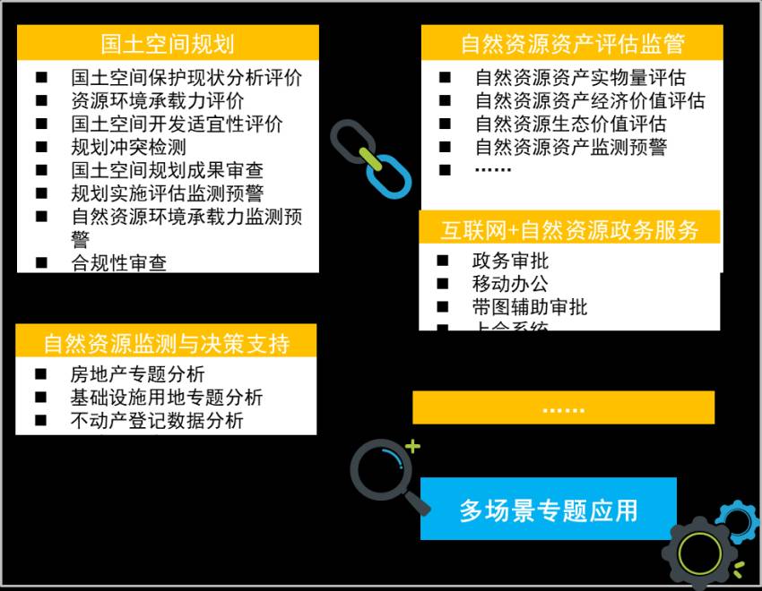 面向自然资源不同业务场景,提供各类基础分析功能、通用分析应用和专题分析应用等不同层次、不同类型的高效能数据分析应用能力,并具备定制化、可扩展、高性能、即拿即用的诸多特点,满足不同层次用户的需要,有助于自然资源数据的深度分析挖掘,为国土空间规划编制、自然资源统一管理、开发利用保护、资源综合监管、行政审批、辅助决策等业务应用提供强大的分力支撑。