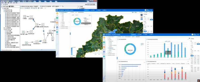 基于广东省自然资源一体化数据库成果,建设了一套完善的指标体系和丰富的评估模型,有效支撑了土地、矿产、森林、海洋、水资源等各类自然资源的实物量核算、经济价值评估以及生态价值评估,摸清自然资源家底。构建自然资源资产评估成果一张图,直观展现全省各区域各类自然资源资产价值分布、权属、以及随年度变化情况,为开展自然资源资产评估、辅助自然资源资产负债表编制、国有自然资源资产专项报告编制等提供支撑,为生态环境保护、动态审查评估、宏观决策等方面提供辅助依据。
