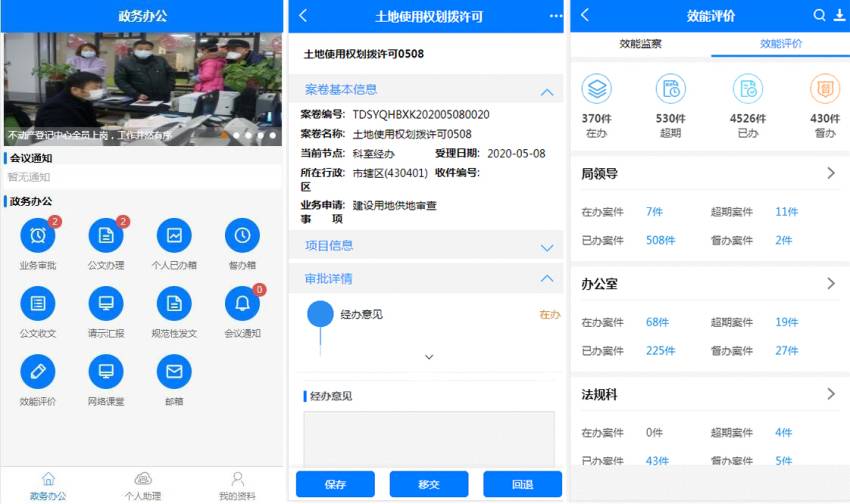 为方便领导和工作人员能及时进行业务办理、效能监管等,提高工作效率,在保证安全的情况下,通过政务辅助审批移动APP可在任何时间、任何地点处理与业务相关的任何事情,包括公文办理,案件审批、在线督办、效能监察等,且审批智能化,操作傻瓜化,从而做到工作实时提醒,事事随时清楚,提升政府服务能力和社会公众满意度。