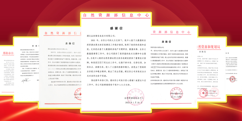 自然资源部等各级单位颁发的表扬信