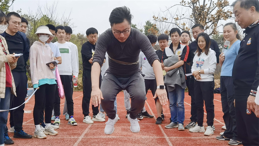 立定跳远作为一个非常考量技巧的赛事,吸引了6支队伍的踊跃参赛和大量围观。在起跳、腾飞、落地的每个环节,健儿们不断的查找问题、总结经验,一次又一次的突破自我,精益求精。