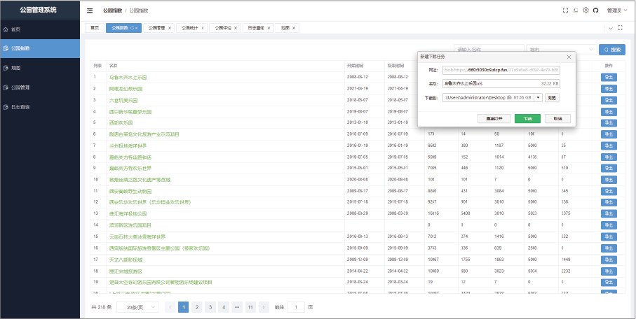 以促进自然资源节约集约利用为出发点,以《关于规范主题公园建设发展的指导意见》等文件为依据,以强化建设用地总量和强度双控管理、提高资源利用效率为目标,以主题公园为对象,开展分布式海量主题公园大数据聚合采集、异常点高效检测、正常运营或停止运营等状态信息实时监测,智能发现主题公园用地闲置、荒废等问题,为主题公园全过程节约集约管理提供软件支撑。
